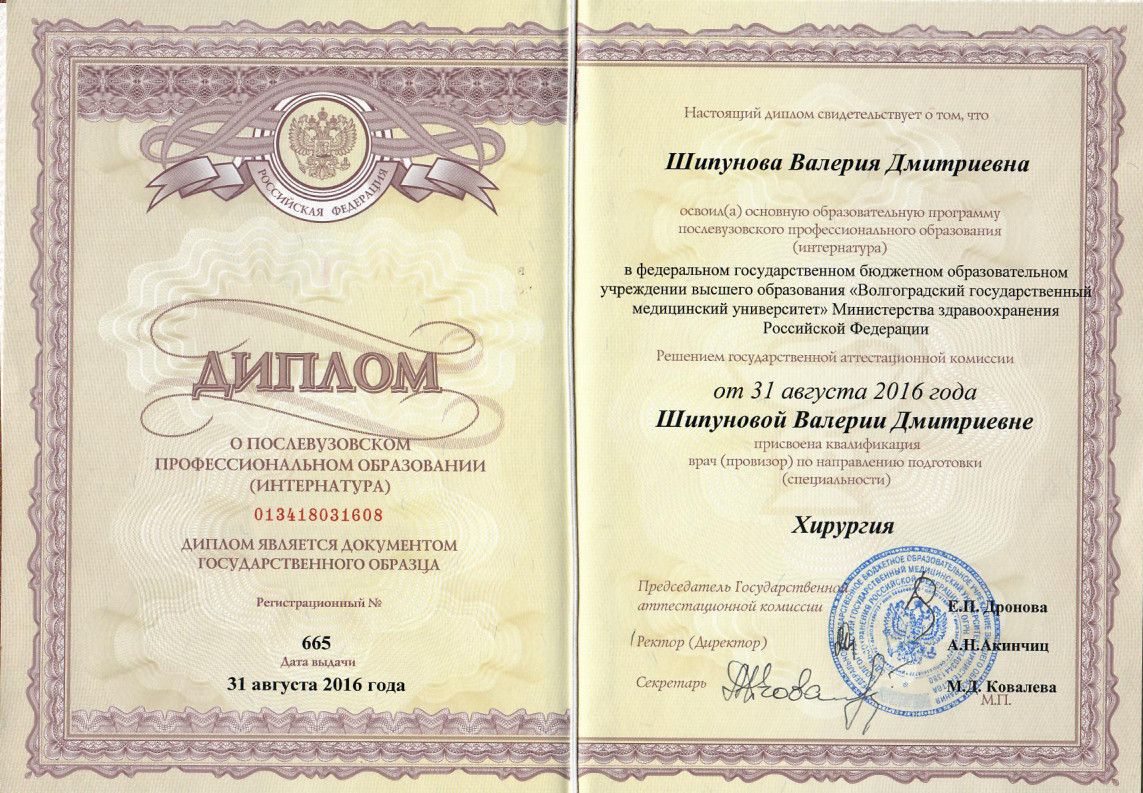 Волгоградский государственный медицинский университет, общая хирургия (интернатура)